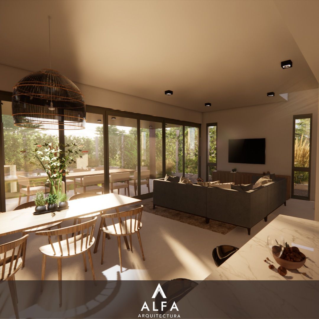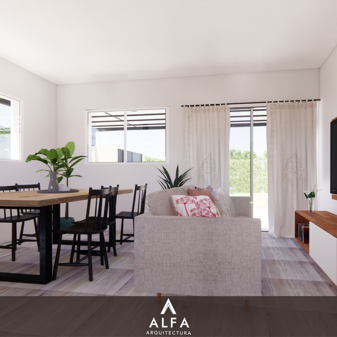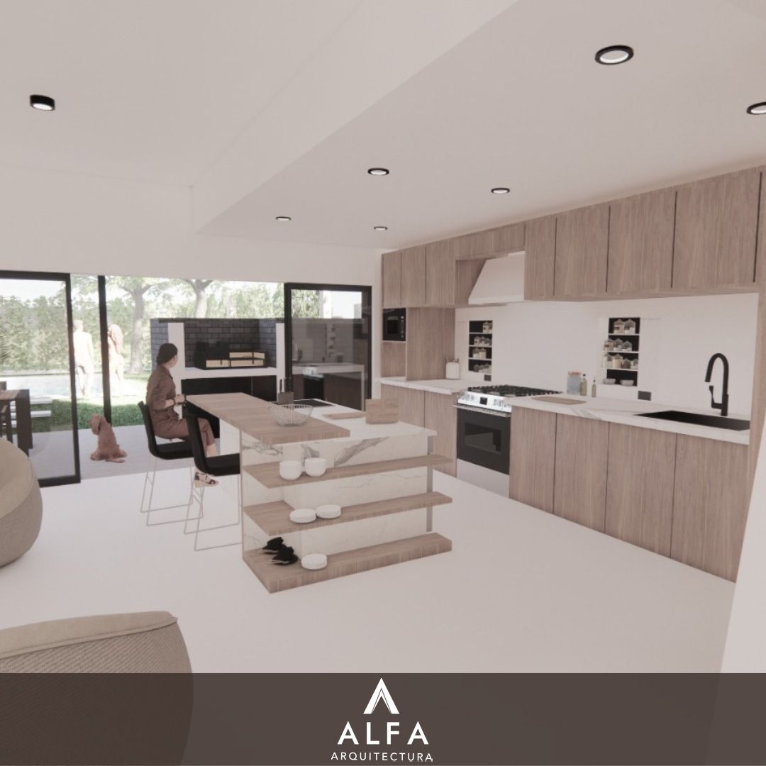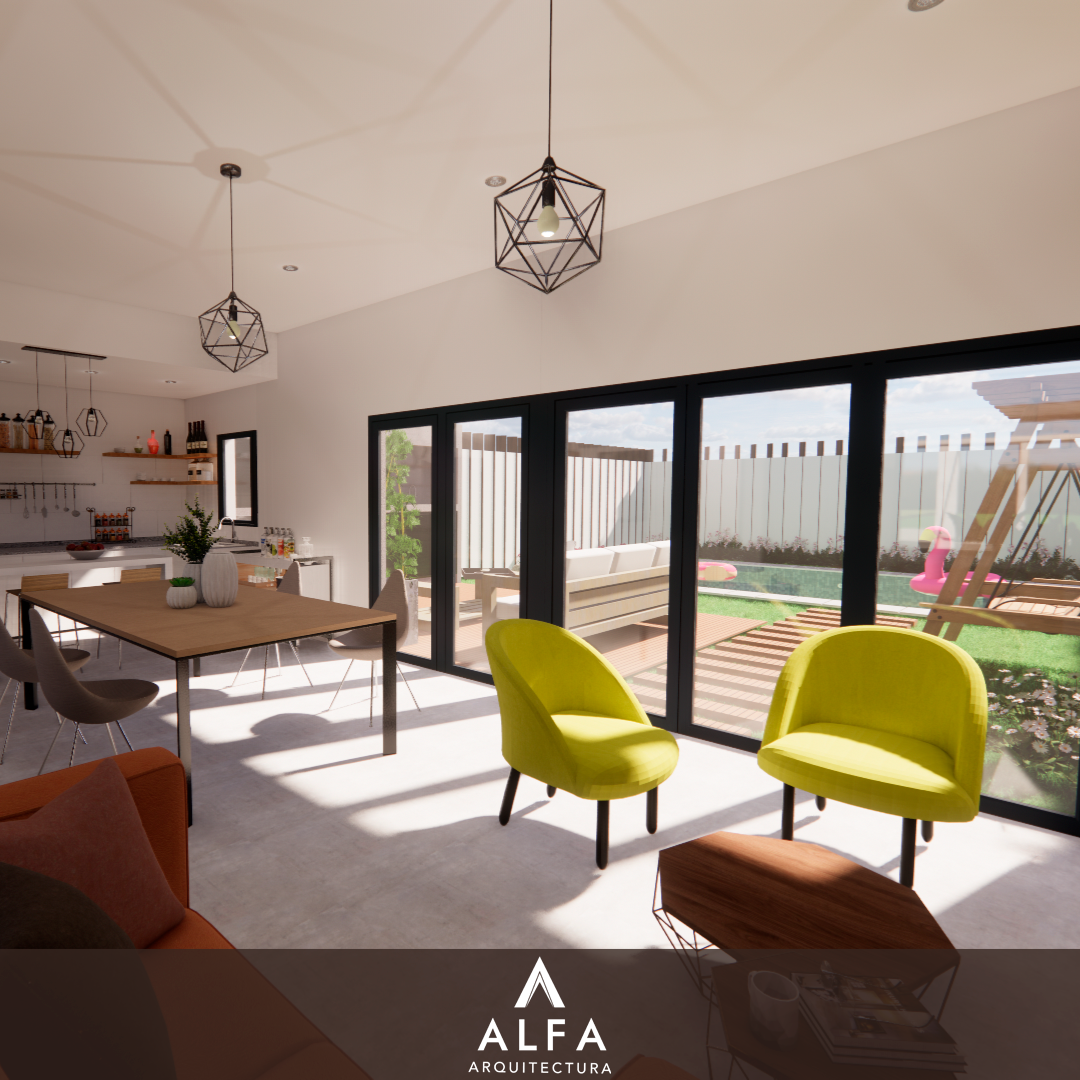 Es una vivienda Procrear modelo Costera II, se modificó a nuestro estilo y se pensó para unificar la cocina con un semicubierto al exterior.
