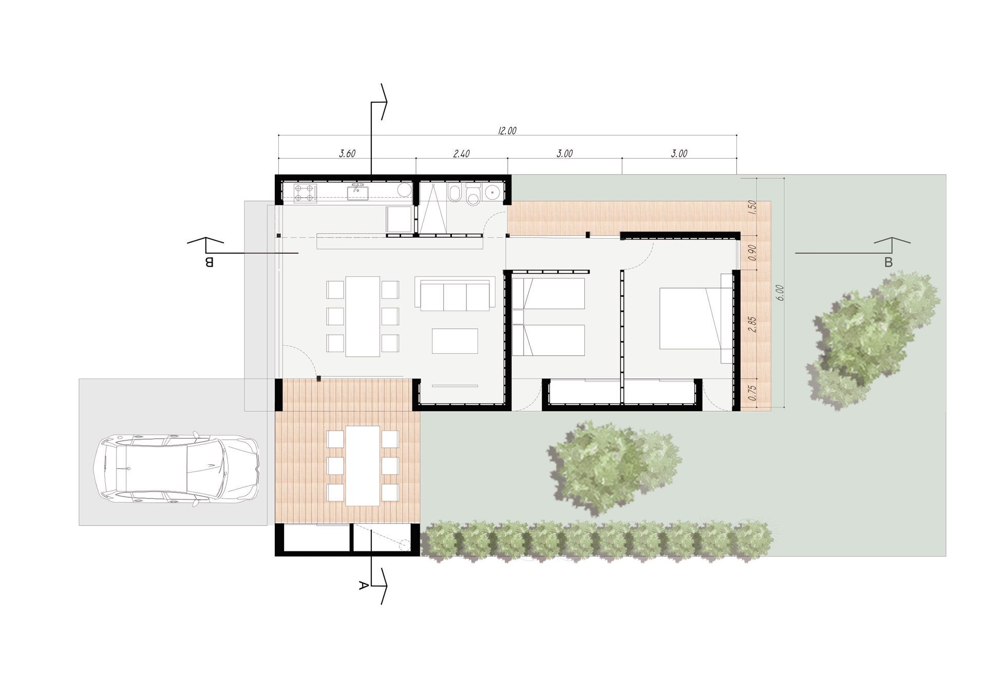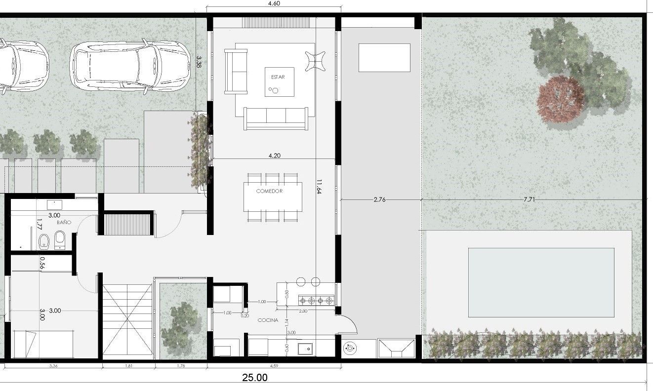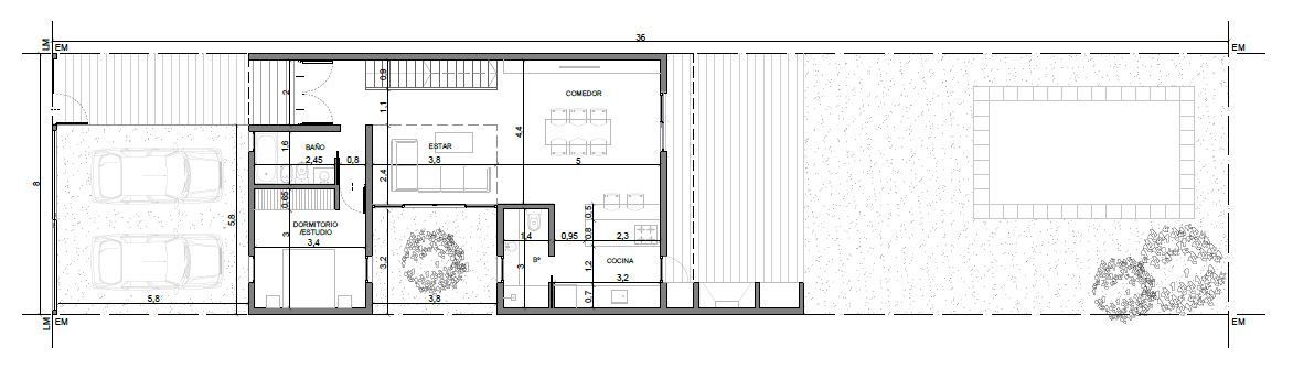 Es una vivienda Procrear modelo Juana, se modificó a nuestro estilo y se pensó para divir la parte privada de la pública. Cuenta con un gran espacio social, vinculado con el exterior.
