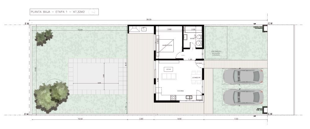 La obra constara de 2 etapas con proyecciones a futuro en el cual habrá una planta baja con totalidad espacial y una planta alta exclusiva para ser privada.