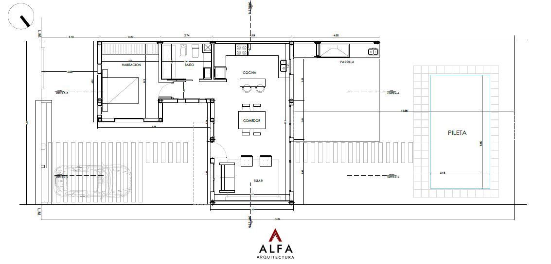 Es una vivienda Procrear modelo Alfonsina, modificada a nuestro estilo y necesidades del cliente. Se creo una tira pubica, y otra mas privada.